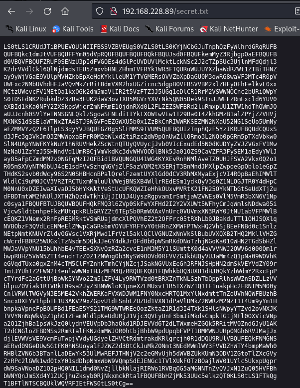 Nous allons voir le fichier secret.txt découvert grâce à nmap